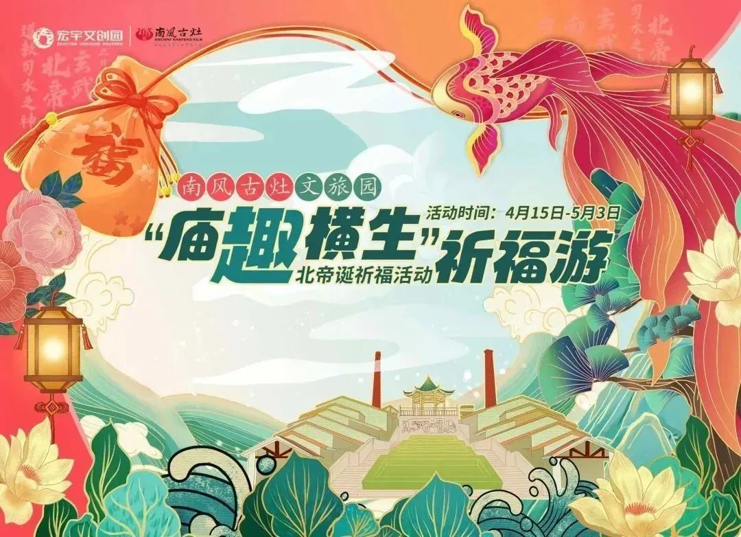 五一期间,南风古灶举办“庙”趣横生祈福游园活动,届时现场设有文创体快闪点,加入打卡大部队,一边品味古灶雪糕一边选购文创商品吧。