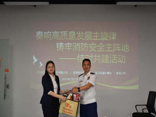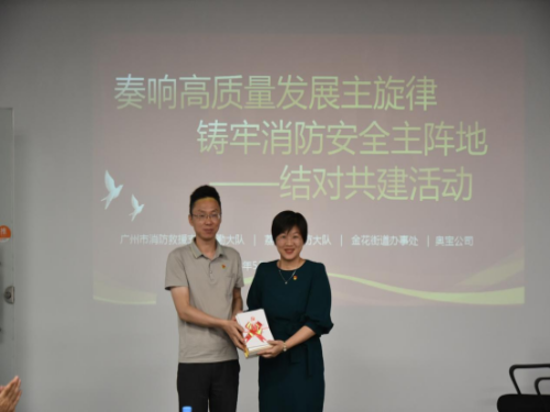 为深入学习贯彻党的二十大精神,拓宽党建工作思路,加强党建工作经验交流,进一步发挥党建引领安全作用,为地区高质量发展保驾护航,5月10日下午,金花街道办事处、广州市消防救援支队特勤大队、荔湾区消防大队、奥宝公司等单位在奥宝汇产业园开展以“奏响高质量发展主旋律,铸牢消防安全主阵地”为主题的结对共建活动。活动由金花街道党工委副书记、办事处主任何健仪同志主持,广州市消防救援支队特勤大队党委书记、政治委员卢士成同志,荔湾区消防大队大队长朱永红同志、第十四届全国人大代表、蟠虬社区党委书记、居委会主任区燕明同志,金花街道党工委委员、办事处副主任刘旭同志,金花街道党工委委员、综合行政执法办主任李富荣同志及奥宝公司副总经理黄贵连同志等20多人参加了活动。