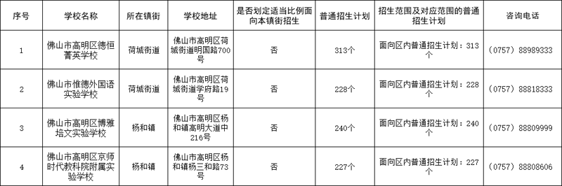 高明区2023年民办初中校内直升及普通招生计划
