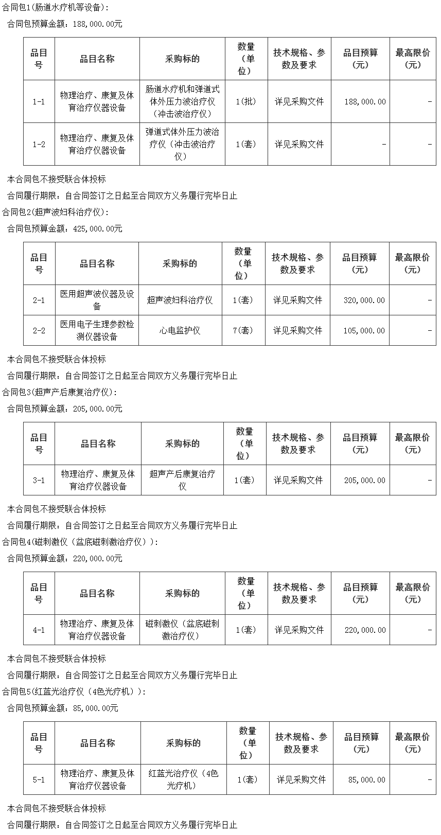 合同包5(红蓝光治疗仪(4色光疗机))特定资格要求如下: