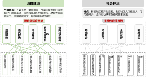 面向气候适应性和人群包容性的设施配置。基于广州岭南地域特征及包容多元的社会特征,从气候适应性和人群包容性视角提升社区设施与空间的规划建设品质。广州夏长冬短、温高湿重,雨量丰沛,宜进行岭南高温湿热气候适应性的社区规划设计。新老城区差异化显著,老城区老龄人口多,密度大,新增空间匮乏,老幼共享型空间需求突出;新城区育龄和儿童人口多,设施用地供给及设置标准宜适度超前。社区空间布局与设施配置具有地区差异,以适应多元人群。