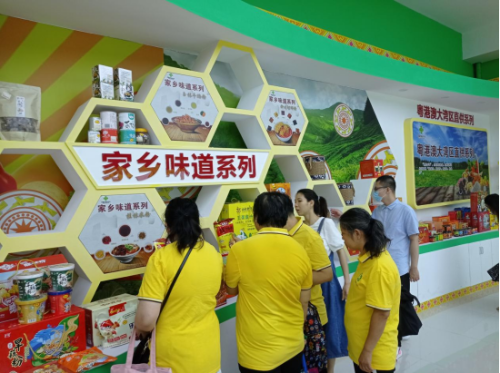(图:工疗站学员们听取扶贫展厅工作人员介绍对口扶贫地区产品)