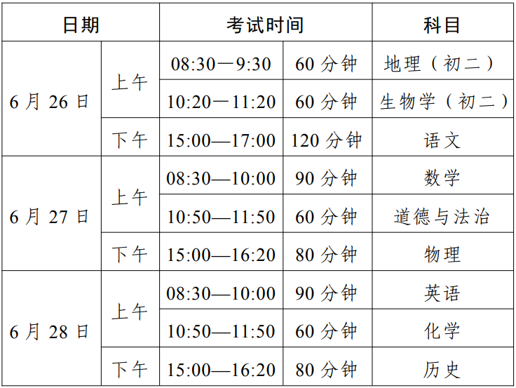 佛山市2023年初中学业水平考试时间安排