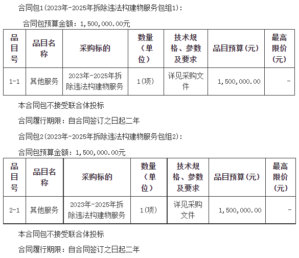2023年-2025年拆除违法构建物服务采购项目的潜在供应商应在广东省政府采购网https://gdgpo.czt.gd.gov.cn/获取采购文件,并于2023年07月03日09时30分(北京时间)前提交响应文件。
