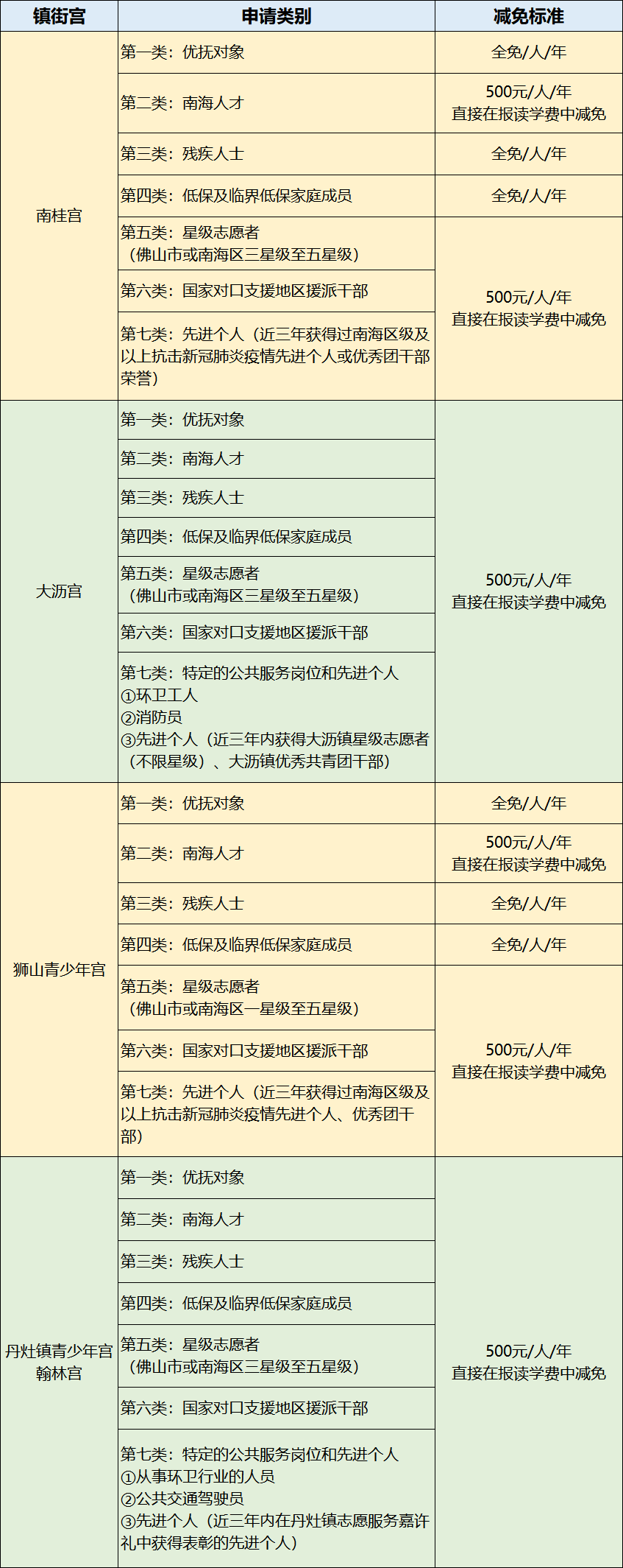 依照《广东省星级志愿者资质认证管理办法》规定,持有佛山市或南海区三星级至五星级志愿者证的对象本人,其直系子女可提交公益学位申请。持佛山市或南海区一星级至五星级志愿者证,在狮山青少年宫皆可享受减免。