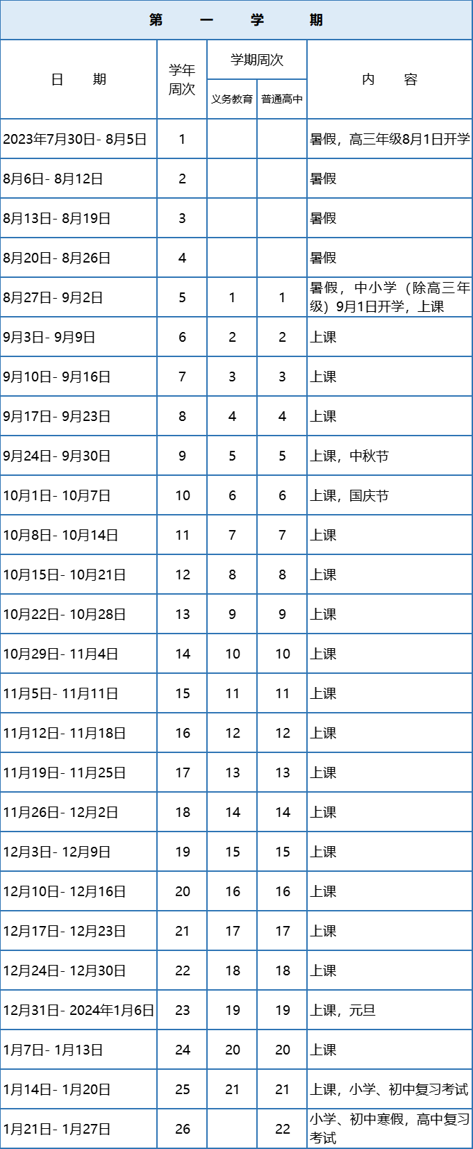 普通中小学校校历出炉