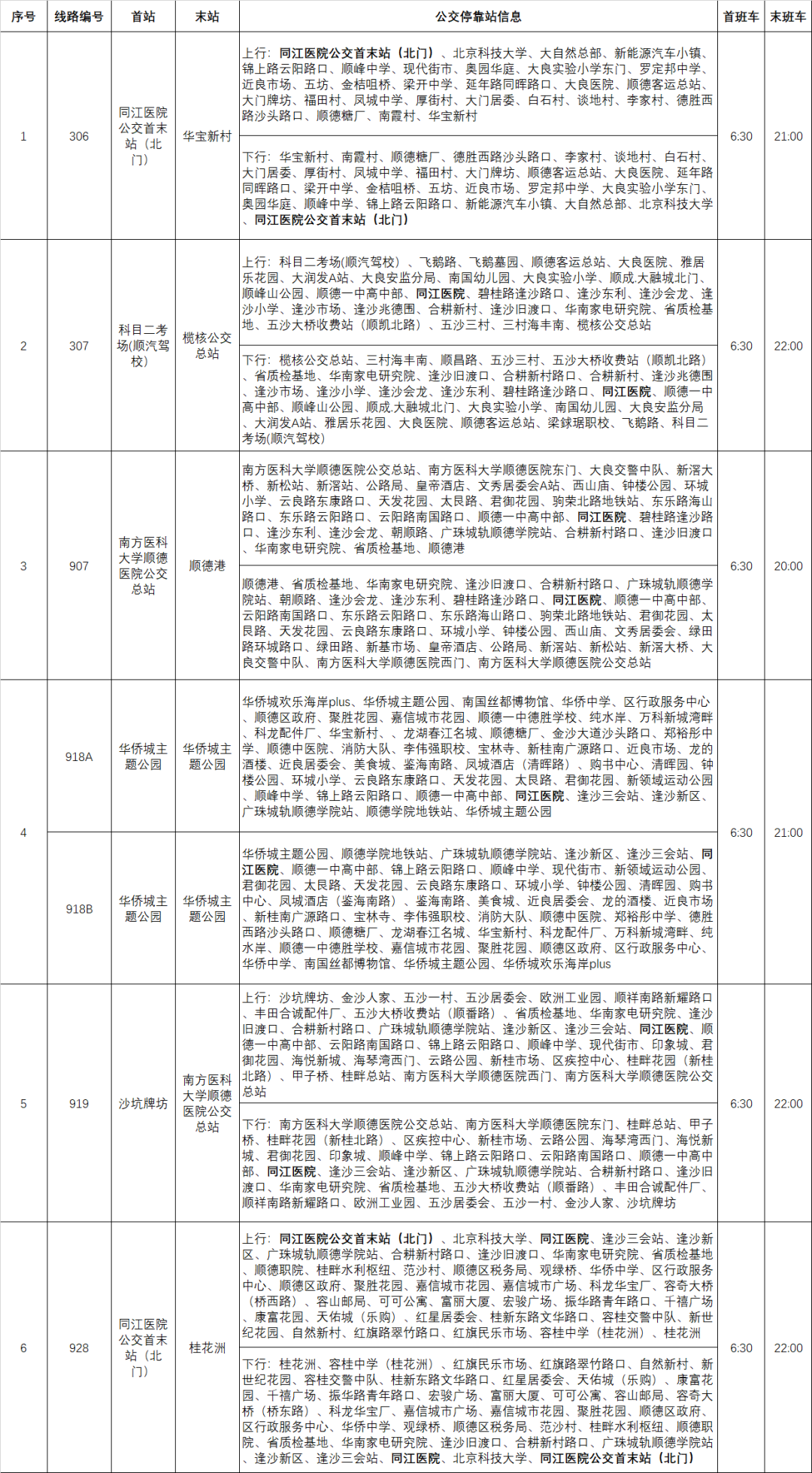 公交928、306线路引入医院首末站始发,再加上途经广东同江医院正门的至307、907、918AB、919线路,覆盖广东同江医院的公交线路达到6条,容桂、大良、伦教的市民通过公交可直达广东同江医院就医。
