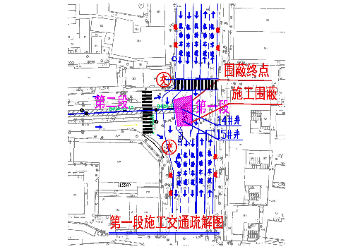 第二阶段:除市东路口外全段污水管暑假期间与第一段同步施工,由西往东占用主车道施工,由西往东主干道封闭,主干道南侧保留1.5米宽的由西往东非机动车通道,南侧3.5米宽辅道供机动车由西往东单向行驶,留北侧3.5米宽辅道供非机动车由西往东行驶。施工期间路口处分段保留南北向人行道。