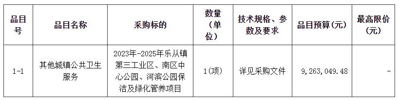 项目名称:2023年-2025年乐从镇第三工业区、南区中心公园、河滨公园保洁及绿化管养项目