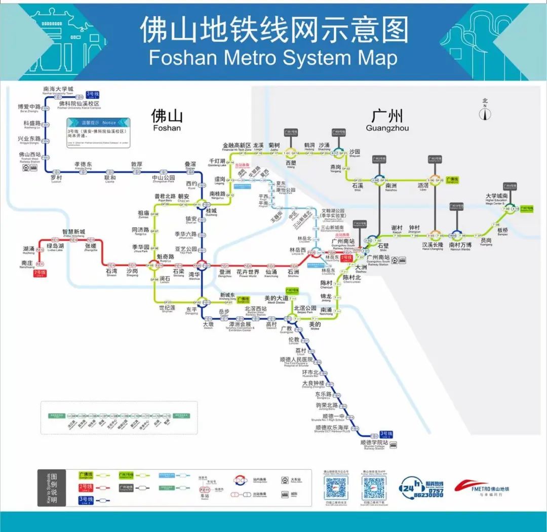 佛山地铁网示意图。