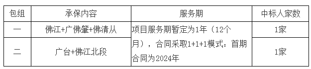 2024年度佛江高速、佛江北、广台(一期及二期)、佛清从和广佛肇路段的财产一切险、营业中断险、公众责任险、雇主责任险及现金保险。
