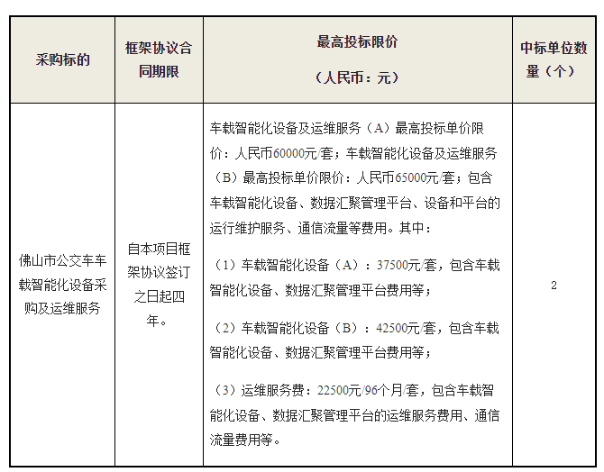 二、项目名称:佛山市公交车车载智能化设备采购及运维服务项目