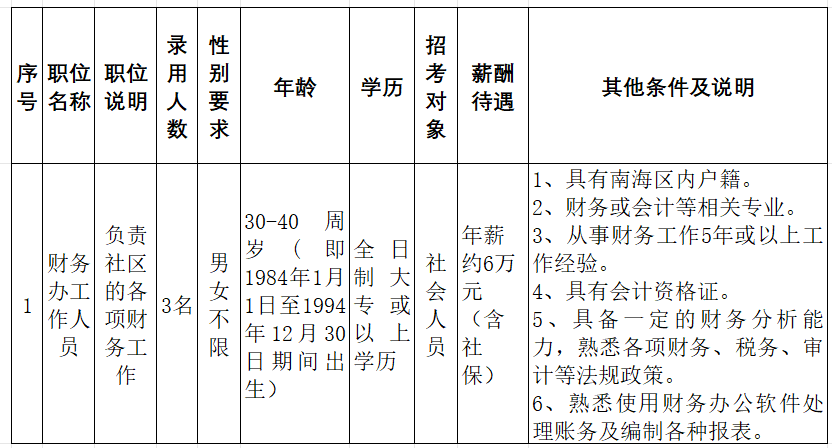 大沥镇黄岐社区居民委员会因工作需要,拟向社会公开招聘社区工作人员若干名,具体要求如下: