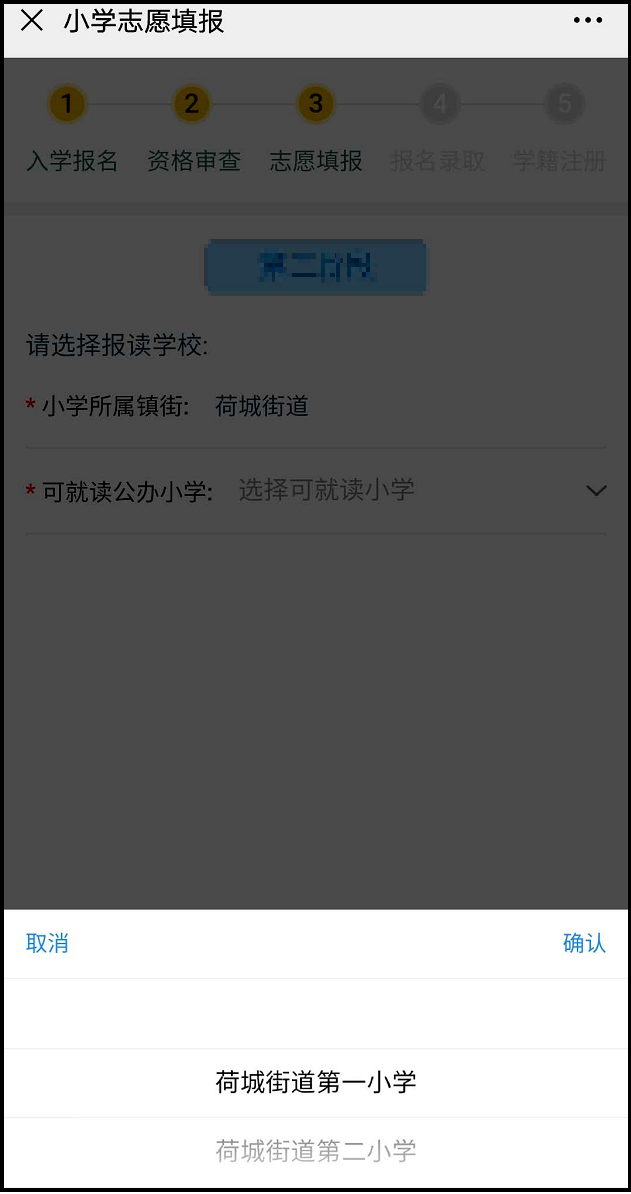 2.在“志愿填报”中选择符合条件的所属镇(街道)公办学校志愿,提交志愿结果。