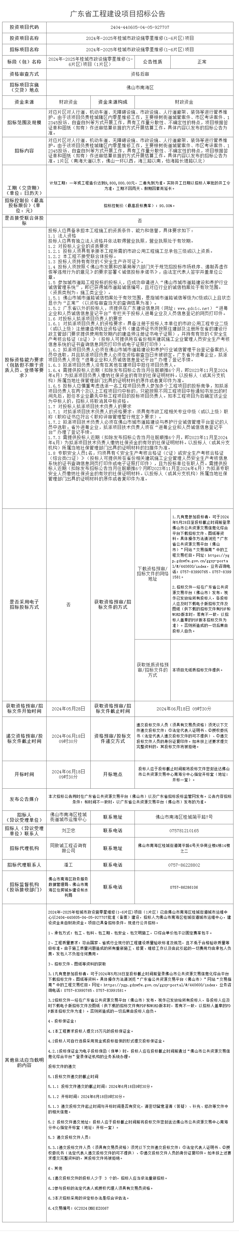 2024年-2025年桂城市政设施零星维修(1-6片区)项目(1片区)招标公告