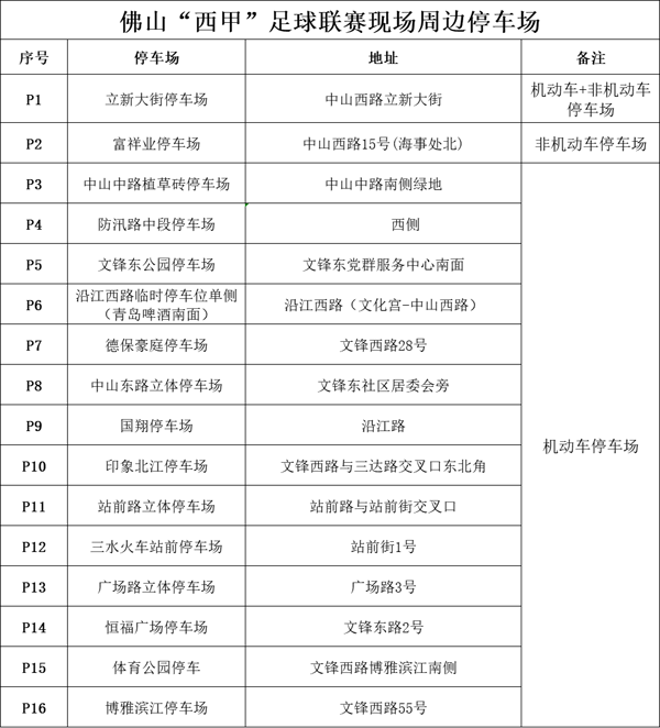 温馨提醒:从沿江西路前往观看球赛的群众建议将电动自行车停放在立新大街停车场;从文锋西路前往观看球赛的群众建议将电动自行车停放在富祥业停车场。