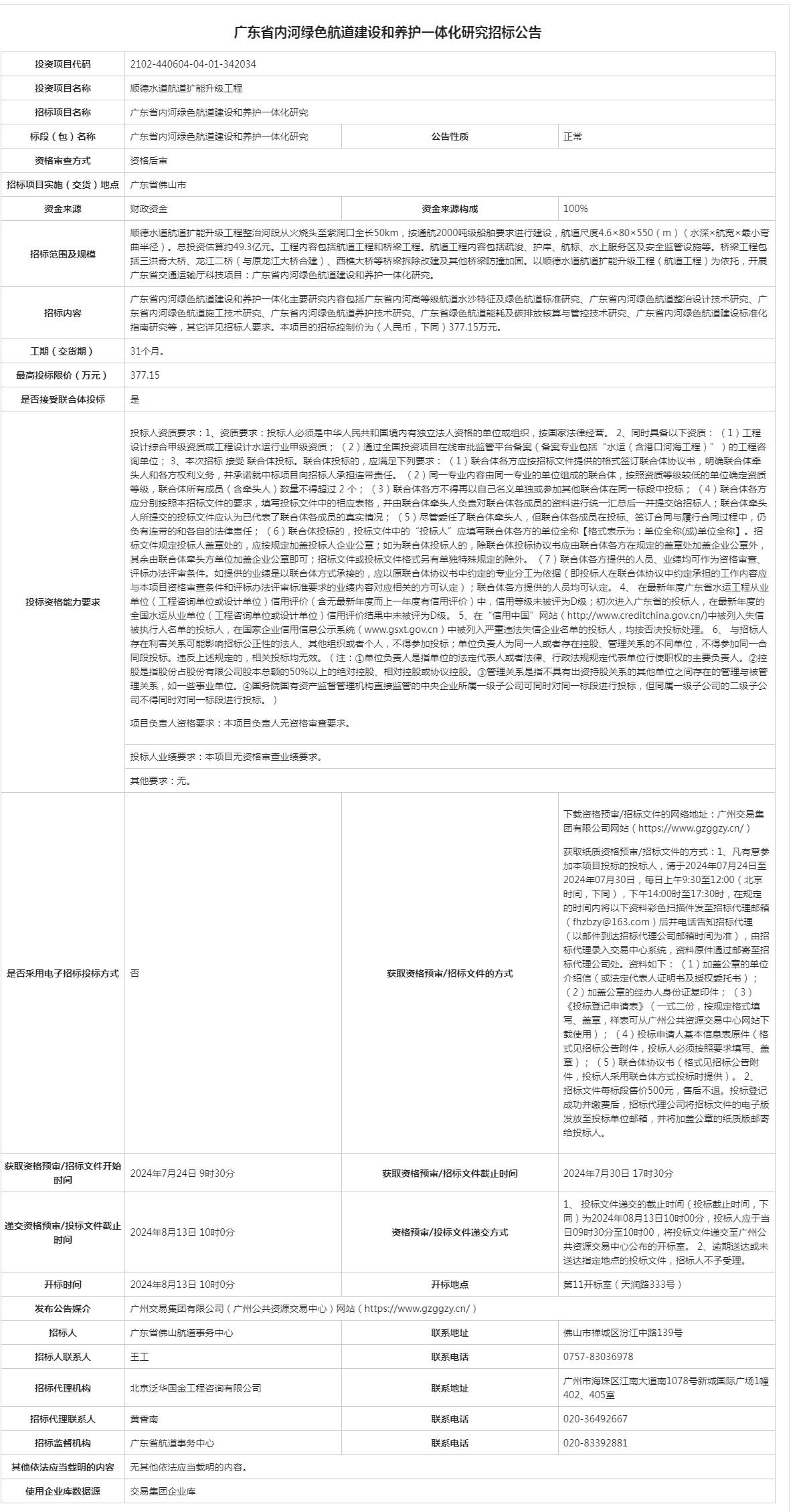 广东省内河绿色航道建设和养护一体化研究招标公告
