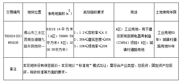 五、有意参与竞买者可于2024年8月23日后登录网上交易系统下载TD2024(SS)WP0035地块的《佛山市三水区国有建设用地使用权网上拍卖出让文件》。