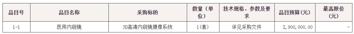 项目名称:佛山市高明区人民医院3D高清内窥镜摄像系统采购