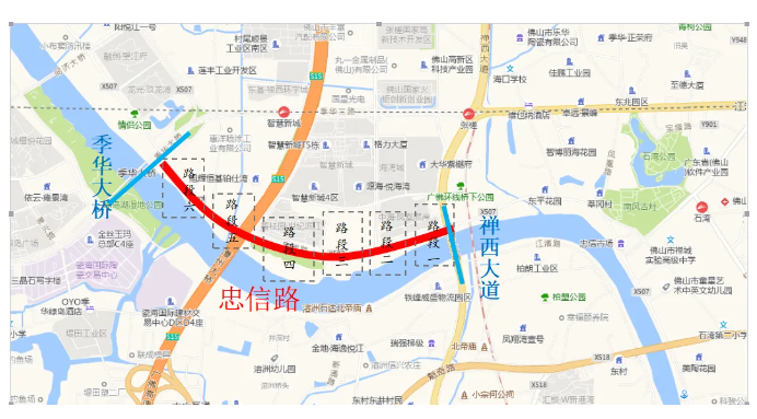 占道路段:分段占道忠信路(禅西大道至季华大桥)。