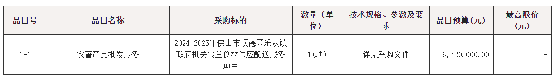 2024-2025年佛山市顺德区乐从镇政府机关食堂食材供应配送服务项目招标公告