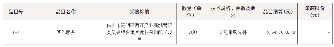 项目名称:佛山市高明区西江产业新城管理委员会综合饭堂食材采购配送项目