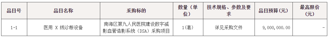 项目名称:南海区第九人民医院建设数字减影血管造影系统(DSA)采购项目
