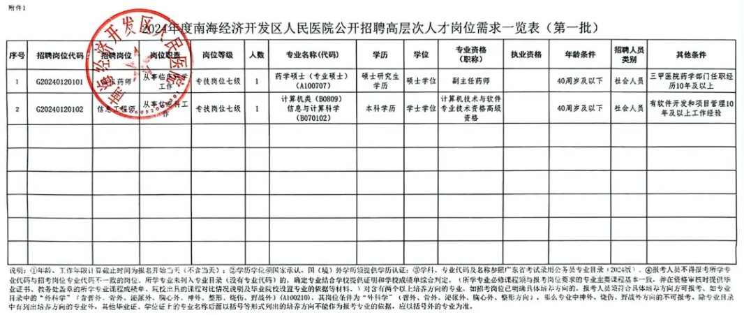 根据工作需要,南海经济开发区人民医院公开招聘2名高层次人才。为确保招聘工作顺利进行,根据《广东省事业单位公开招聘人员办法》(粤府令第301号)及有关文件规定,现将有关事项公告如下: