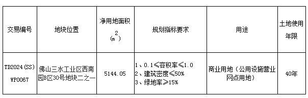 五、有意参与竞买者可于2024年11月28日后登录网上交易系统下载TD2024(SS)WP0067地块的《佛山市三水区国有建设用地使用权网上拍卖出让文件》。