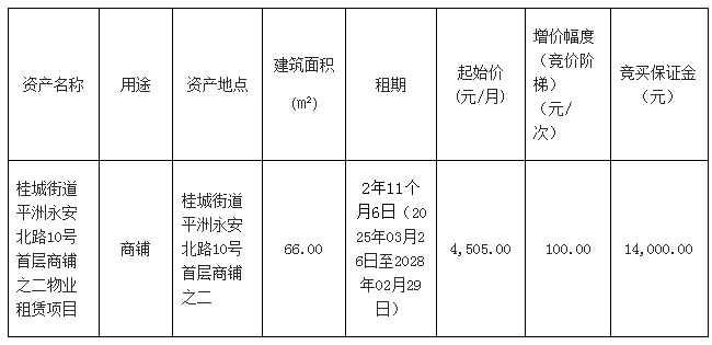 南海桂城街道平洲永安北路10号首层商铺之二物业租赁项目