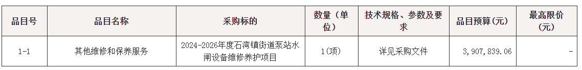采购包1(2024-2026年度石湾镇街道泵站水闸设备维修养护项目):
