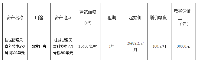 南海桂城街道天富科技中心3号楼302单元物业租赁项目