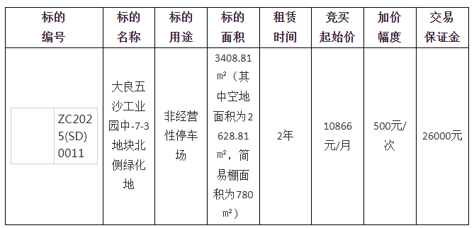 佛山市顺德区大良德良物业管理公司采用网上竞价方式出租位于佛山市顺德区大良五沙工业园中-7-3地块北侧绿化地,欢迎符合资格的竞买人参与竞价。