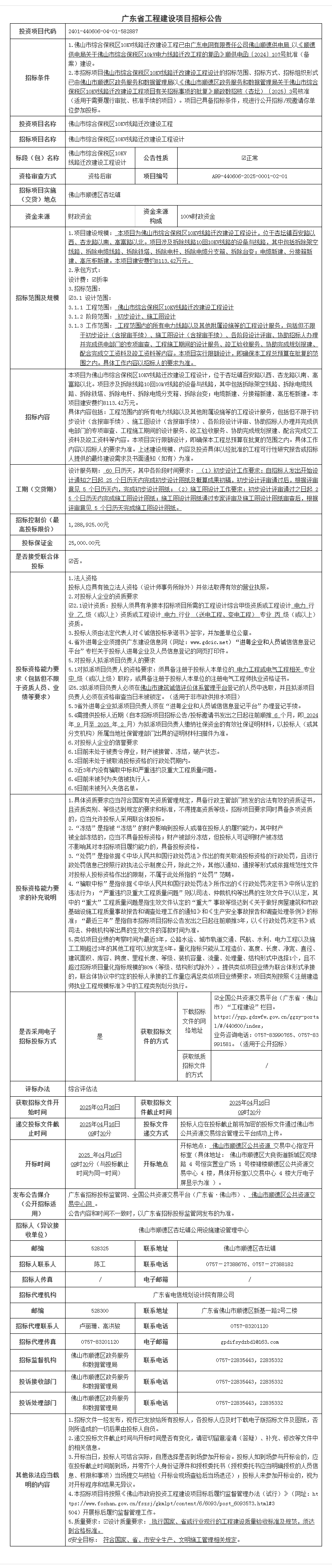 南海区第二期电力管廊项目-佛山110千伏广佛输变电工程配套电力管廊项目勘察设计招标公告