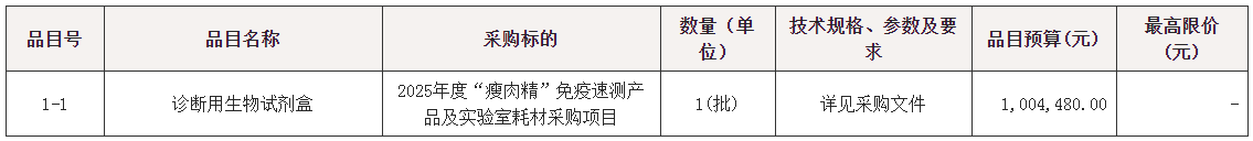 采购包1(2025年度“瘦肉精”免疫速测产品及实验室耗材采购项目):