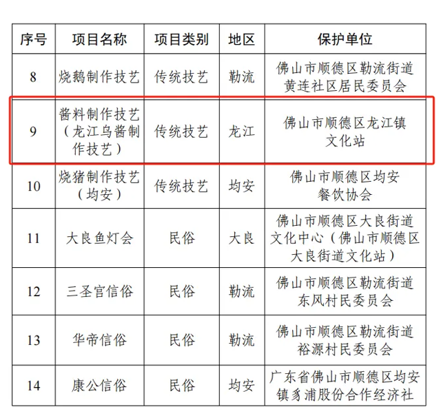 龙江乌酱“香”进顺德区非物质文化遗产代表性项目
