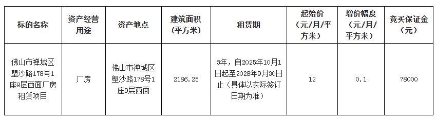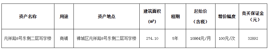 4.产权证照情况:有产权证照(竞买人应充分考虑其风险,一经存入竞买保证金即表示承认、接受本项目的现状,愿意按约定支付租赁价款和遵守租赁合同的约定)。
