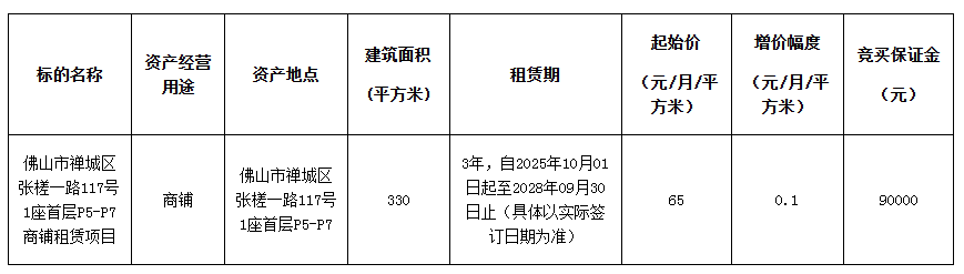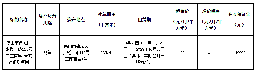 6.免租期:竞得人享有1个月装修免租期,即从2025年10月01日起至2025年10月31日止。