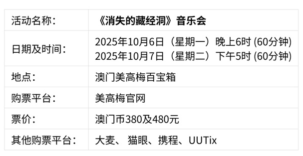 作为本次大展的重要延伸,博物馆特别邀请联合国教科文组织全球亲善大使,国际知名作曲家、指挥家谭盾,带来其潜心创作的《消失的藏经洞》音乐会。音乐会将于10月6日至7日在澳门美高梅"百宝箱"剧场举行,这不仅是一场视听盛宴,更是一次对千年文明的深情叩问与非凡重建,与"丝路"大展形成深度呼应。