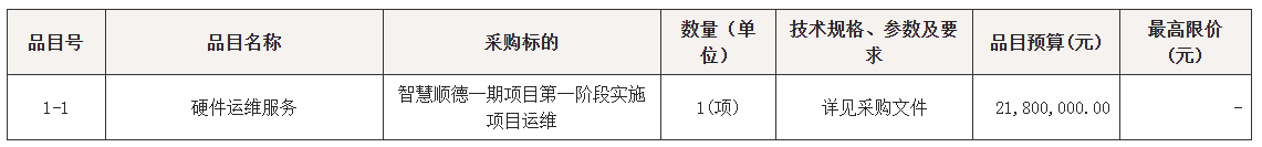 智慧顺德一期项目第一阶段实施项目运维招标公告