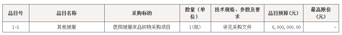 医院被服床品织物采购项目招标项目的潜在投标人应在广东省政府采购网https://gdgpo.czt.gd.gov.cn/获取招标文件,并于 2025年10月14日 09时00分 (北京时间)前递交投标文件。