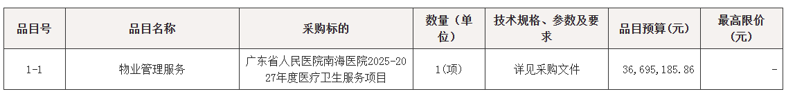 采购包1(广东省人民医院南海医院2025-2027年度医疗卫生服务项目):