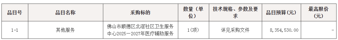 项目名称:佛山市顺德区北滘社区卫生服务中心2025—2027年医疗辅助服务项目