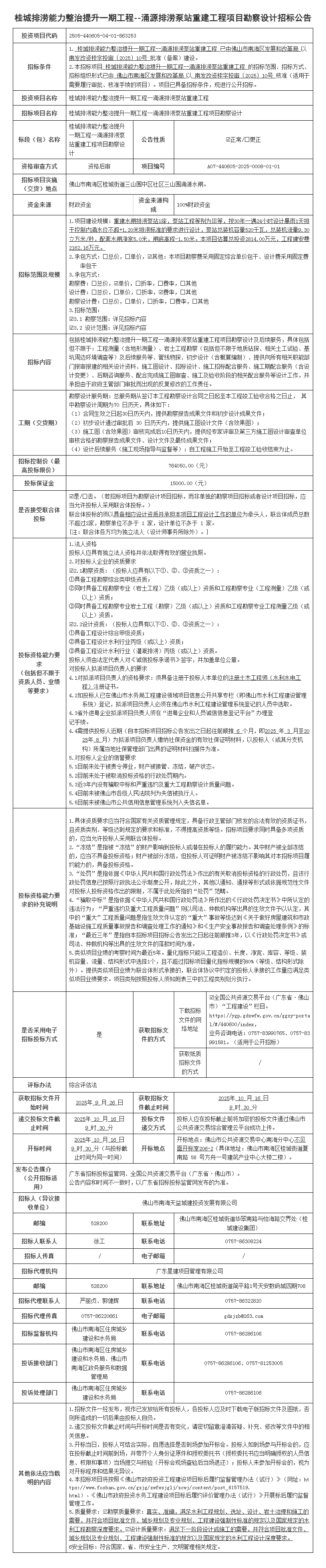 南海桂城排涝能力整治提升一期工程--石岸排涝泵站重建工程项目勘察设计招标公告