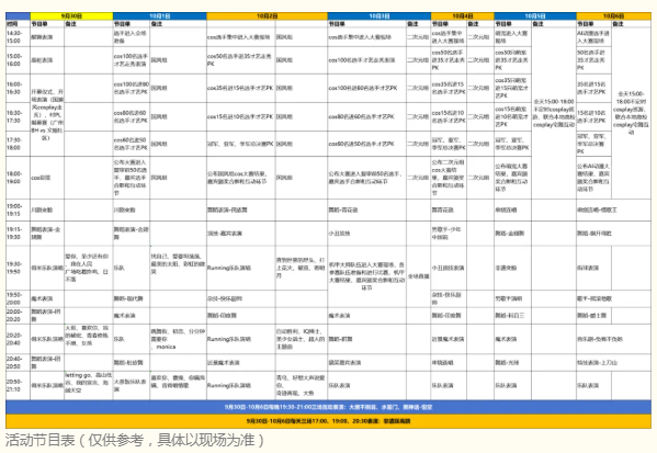 🕜时间:10月1日20:00、10月2日15:00、10月3日20:00、10月4日20:00、10月5日15:00、10月6日20:00、10月7日15:00