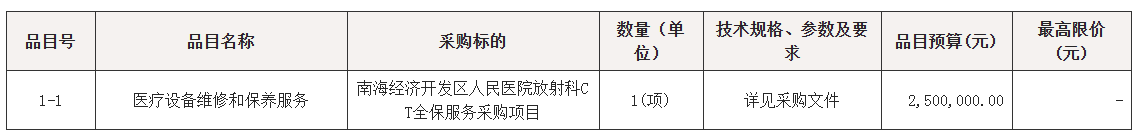 采购包1(南海经济开发区人民医院放射科CT全保服务采购项目):