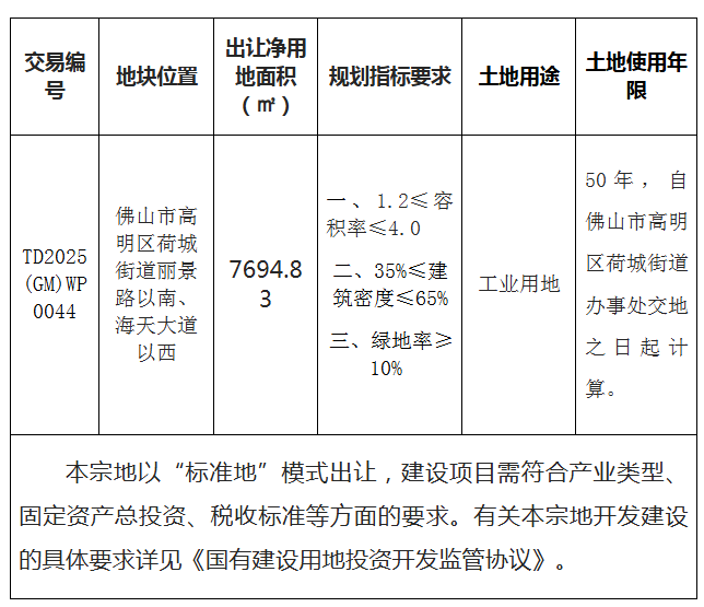 五、有意参与竞买者可于2025年9月28日后登录网上交易系统下载该地块的《佛山市高明区国有建设用地使用权网上拍卖出让文件》。