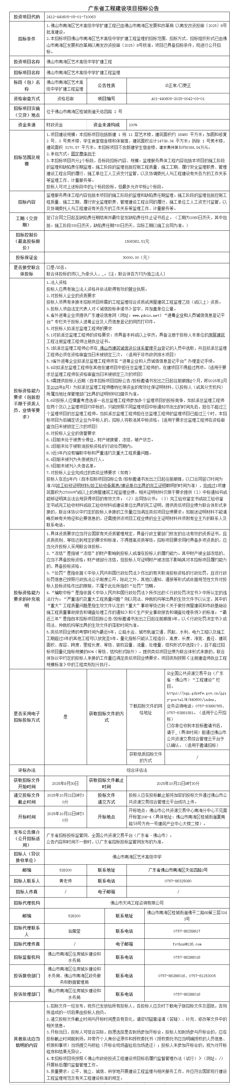 南海艺术中心场馆建设(一期)项目土建施工总承包招标公告