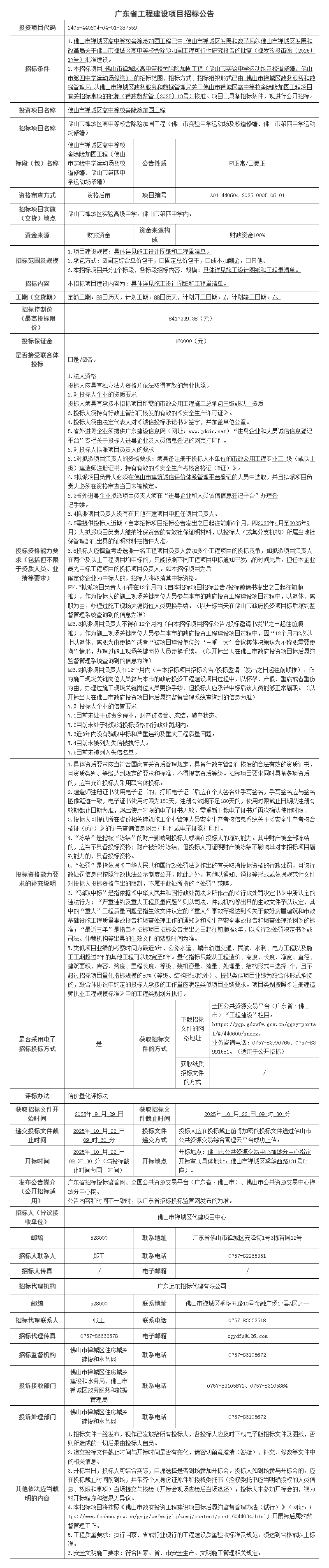 佛山市柒伍柒科技有限公司高中等校舍除险加固工程招标公告