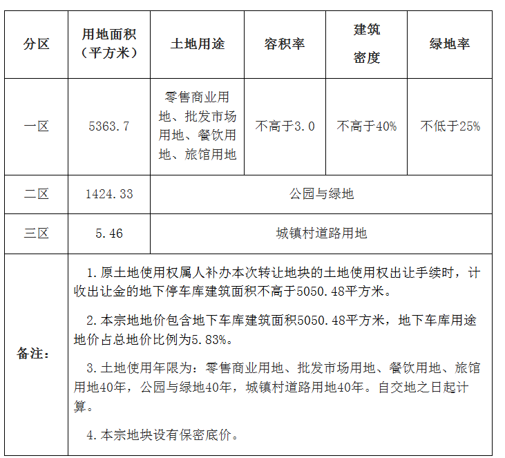 一、网上挂牌出让地块的基本情况和规划指标要求: